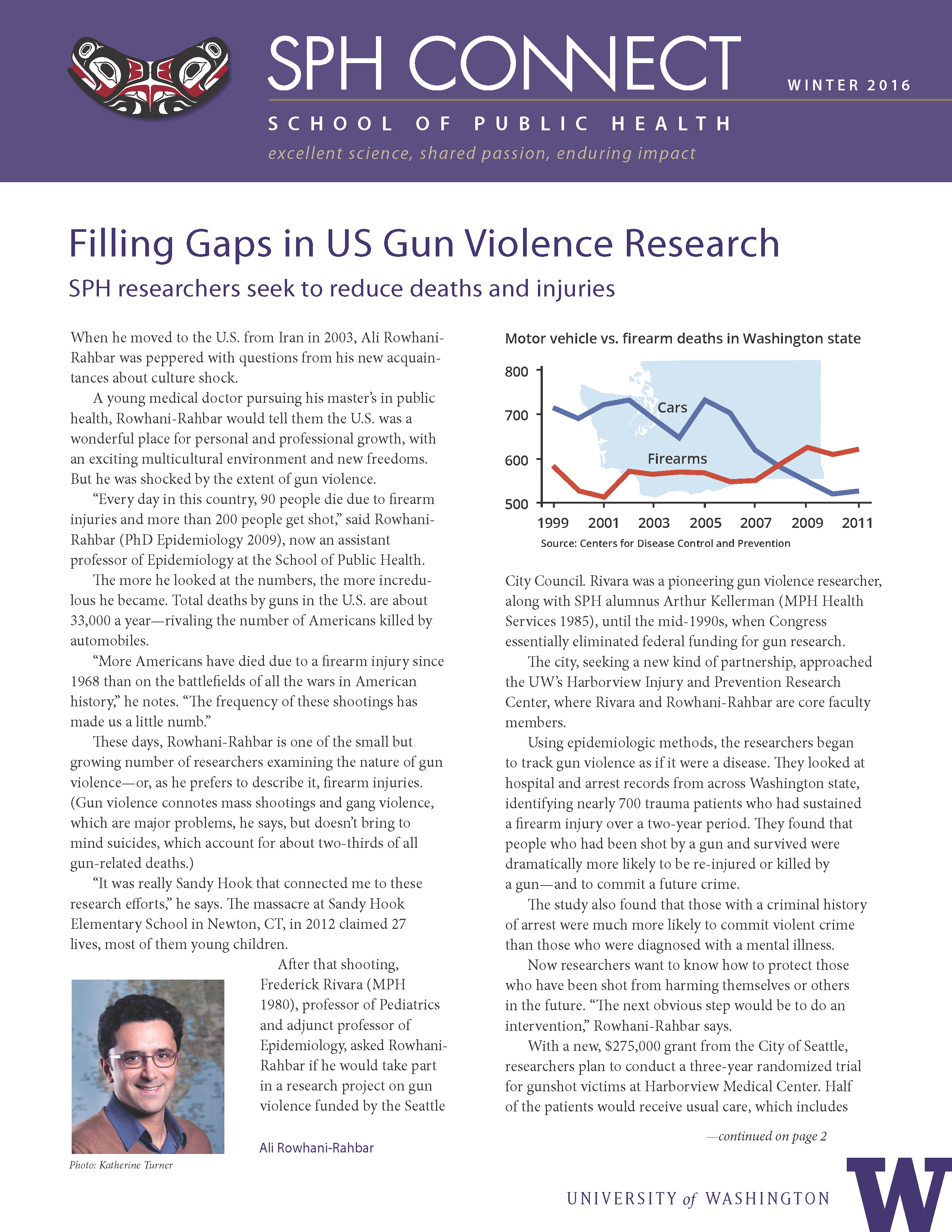 The climate is changing and so is the workforce. PhD student Miriam Calkins, in the Department of Environmental and Occupational Health Sciences, seeks to better understand the connections between the two. “We know that extreme heat is anticipated to increase in duration and frequency,” says Calkins (MS 2012, Exposure Sciences). “Extreme heat can affect not only health and chronic diseases, it can also increase death and rates of injury.” Meanwhile, the economy is seeing more temporary workers and contractors. Calkins plans to spend the summer researching heat-related hazards faced by rooftop construction workers who have no access to shade and limited access to water. Being an ARCS fellow has been a huge financial benefit, she says. “It’s very difficult to meet the standard of living in the Seattle area. It provides me a better work-life balance.” A second benefit is the networking through the Seattle chapter of the ARCS Foundation. Calkins enjoys paddle-boarding, dancing, running halfmarathons, and spending time with her dog. A graduate of Evergreen State College, she co-founded the Olympia Free Clinic for uninsured patients, which opened in 2011.